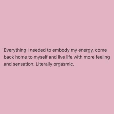 You’re investing in deepening the most important relationship you’ll ever have... the one with yourself and your body. You’re learning how to love yourself unconditionally, to become an orgasmic woman who uses her rich sexual energy to source her inner glow, tap into her creativity, and use this energy for her own healing. You’re rewiring your mind so that nothing, no belief, no fear, no story can ever block you from your power ever again.