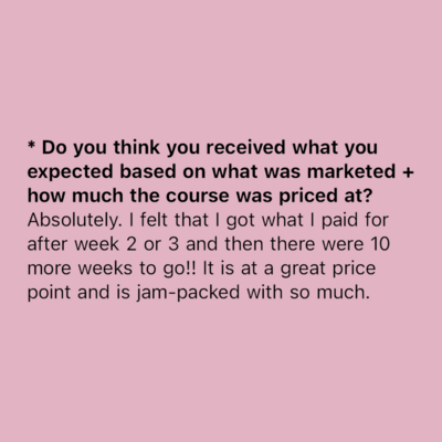 Carlie will reach out to you within 24 hours from applying via instagram or email. Be sure to check your spam account in case emails aren't getting through. She will send you the link to the checkout page. Upon purchase you will receive instant access to the program as well as the link to the community and can start diving into the course content & connecting with everyone straight away.
