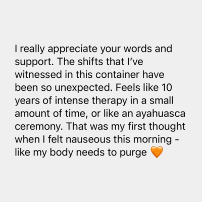 This community will change your life! In between calls we keep in contact via telegram to share insights and thoughts. To allow yourself to be seen and held. Whatever you’re craving, feeling, desiring, this community is here to support you every step of the way.